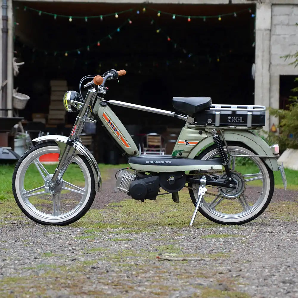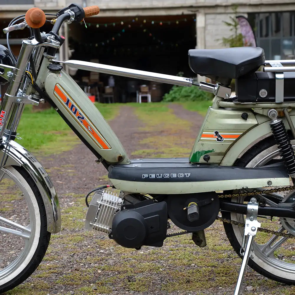Un Peugeot 102 entièrement revisité avec de la pièce de qualité et un kit électrique de la marque Noil. Performance semblable à l'origine. Augmentation de couple grâce au moteur électrique.