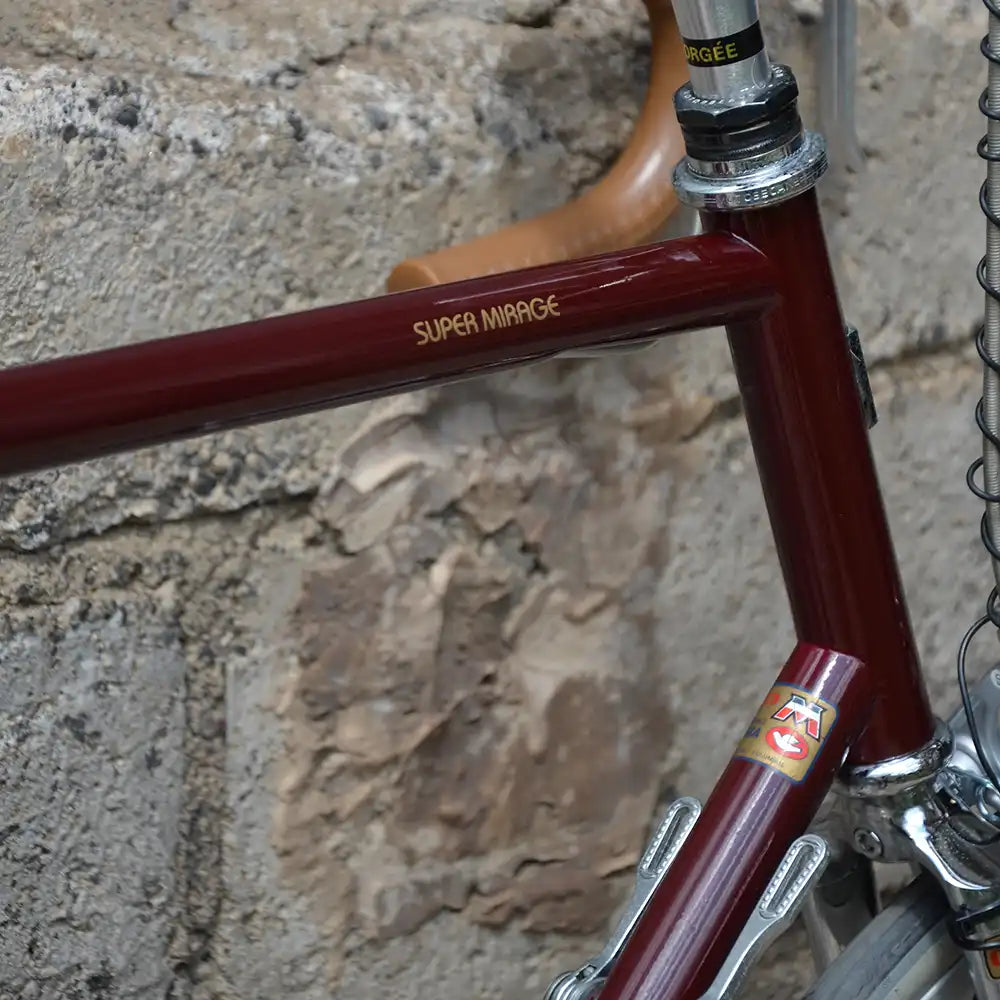 Nous ne repeignons pas les cadres : chaque vélo conserve sa patine d’origine, avec ses marques du temps. On les nettoie et on les lustre avec soin, sans effacer leur histoire. Prenez le temps de bien regarder les photos avant de craquer sur ce vélo Motobecane.