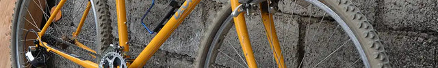 Nous ne repeignons pas les cadres : chaque vélo conserve sa patine d’origine, avec ses marques du temps. On les nettoie et on les lustre avec soin, sans effacer leur histoire. Prenez le temps de bien regarder les photos avant de craquer sur ce VTT Decathlon vintage jaune.